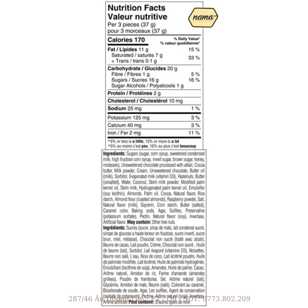Nguyên liệu thượng hạng: Bơ cacao nguyên chất, sữa tươi, hạt dẻ, caramel và trái cây được chọn lọc khắt khe.